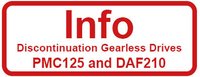 LiftEquip GmbH would like to inform you that the production of the Gearless Drives PMC125 and DAF210 will be shut down in the next few months and the product will be removed from our product range within one year.